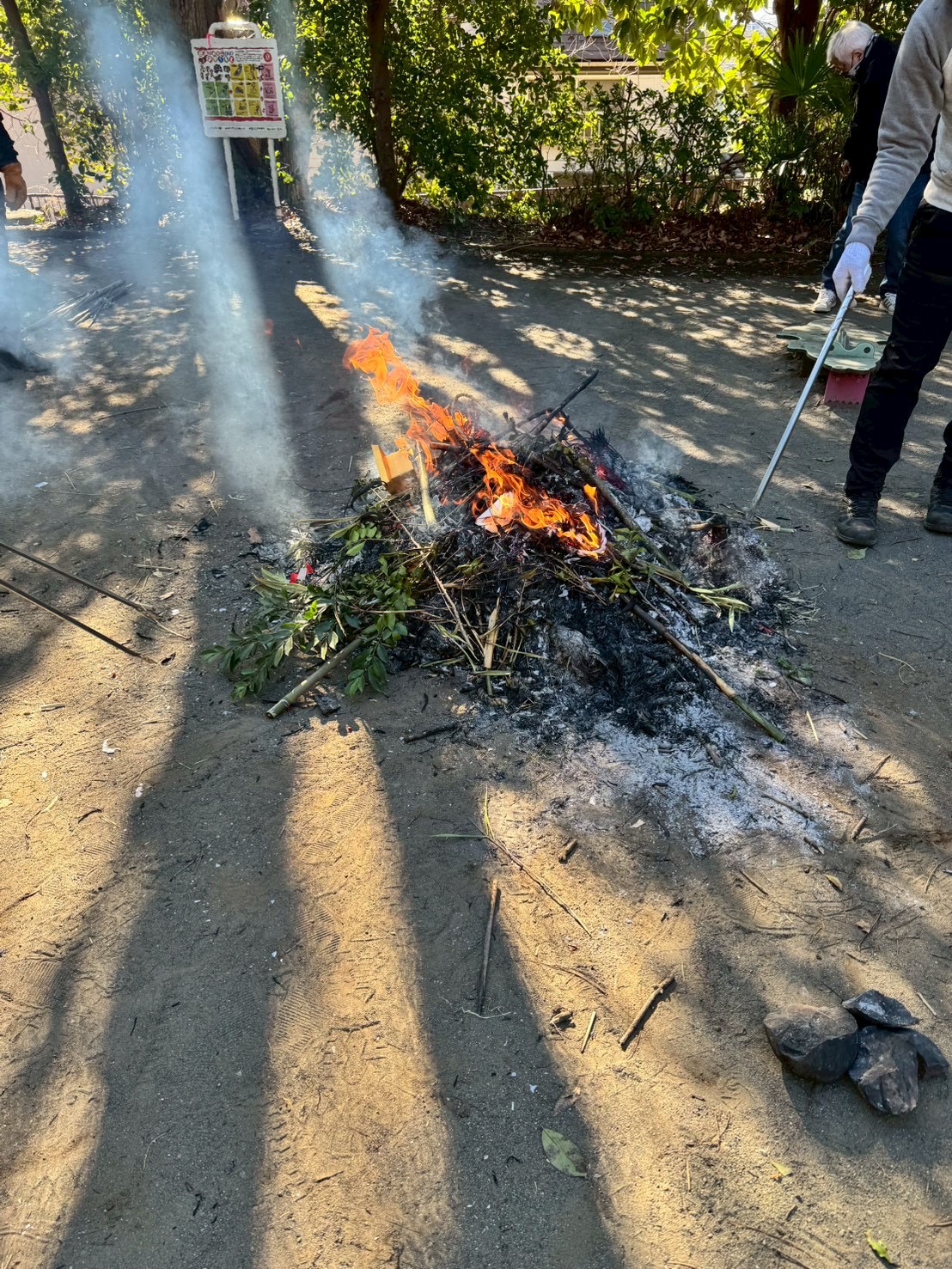 上町公園でどんと焼きが行われると聞き、今年初めてAが参加してきました。