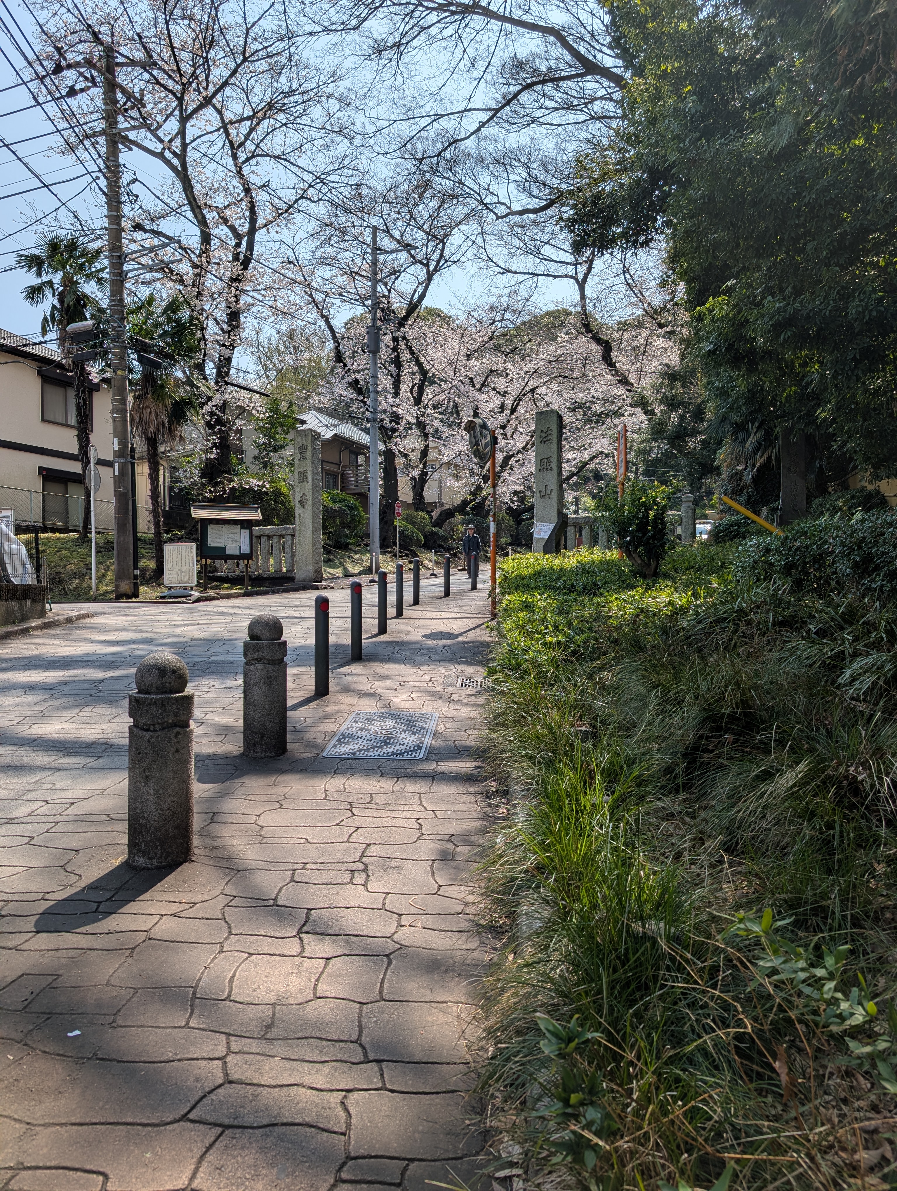 入口の石塔を飾るように咲く景色がとても印象的でした。